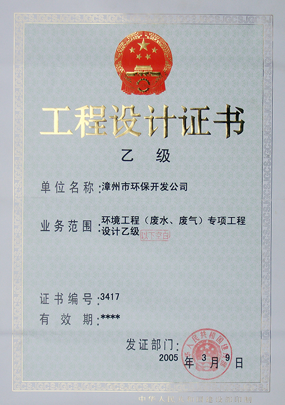 1、環(huán)境工程(廢水、廢氣)專項(xiàng)工程設(shè)計(jì)乙級,證書編號:3417;