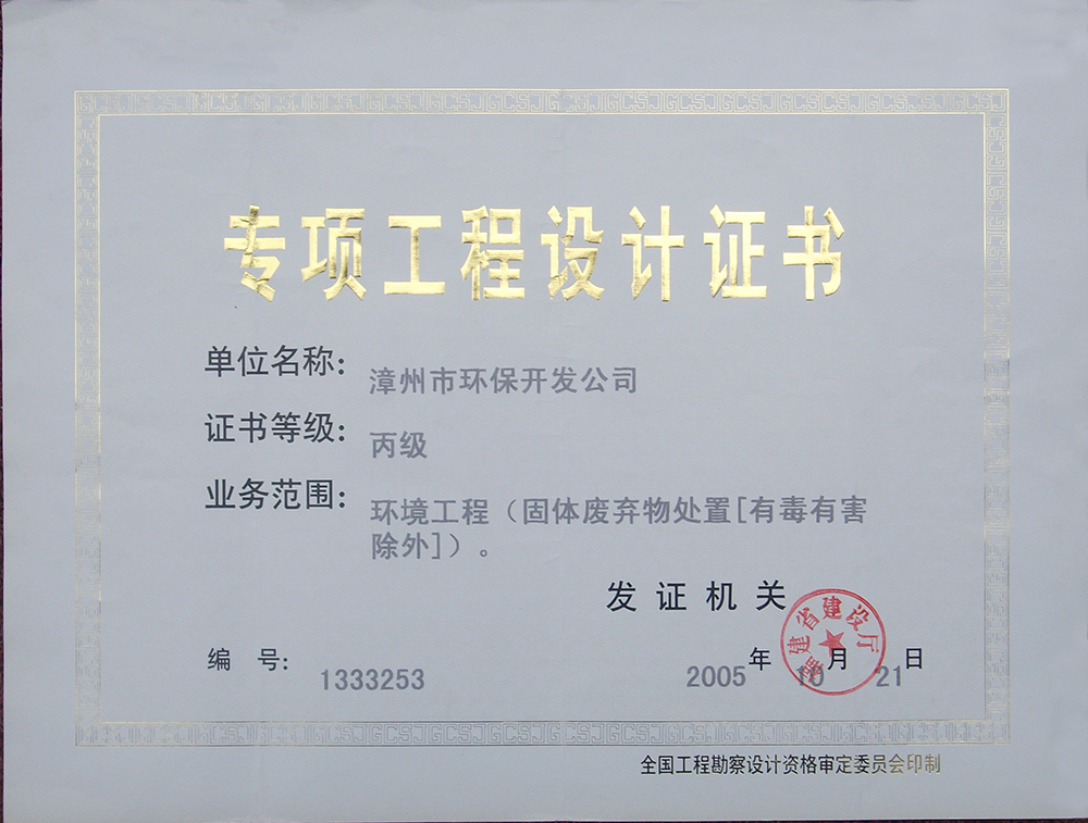 • 專項(xiàng)工程設(shè)計(jì)證書